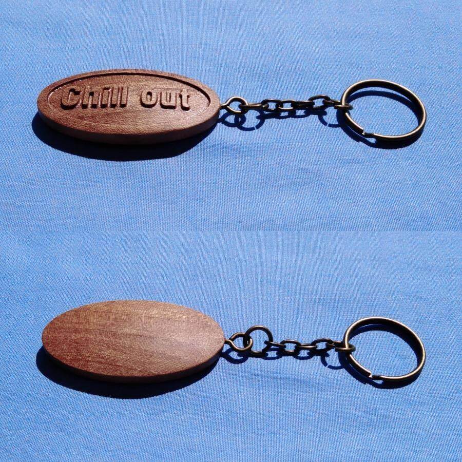 • Μπρελόκ “Slogan – Chill out” από ξυλεία Μεράντι