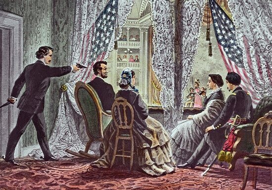 On April 14, 1865, while he was in the gallery at Ford’s Theater in Washington, D.C., John Wilkes Booth, an actor and Southern fanatic, shot him in the head with a bullet, immediately afterward shouting in Latin “Sic semper tyrannis!“, meaning ” So always with tyrants!” Lincoln was taken to a neighboring house in a comatose state, where he expired early on the morning of April 15.