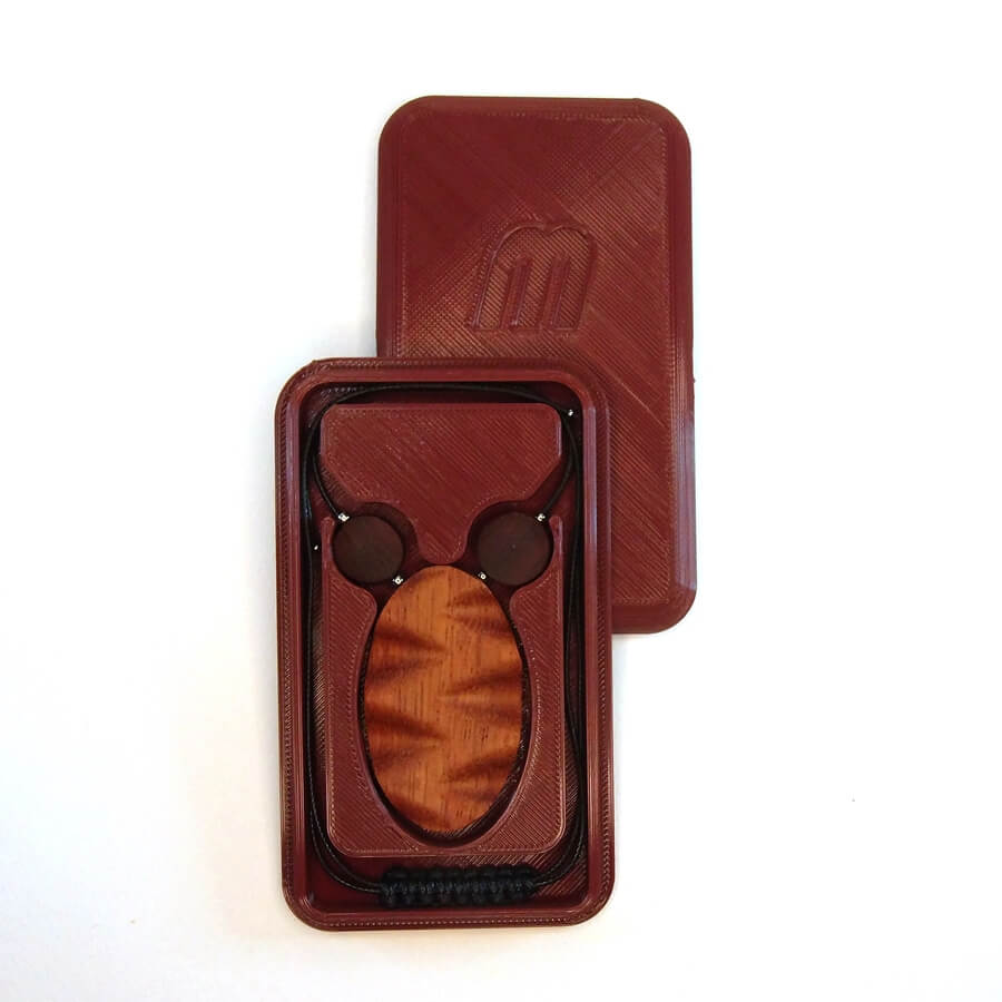 Παραδίδεται σε ειδική θήκη κατασκευασμένη σε 3D εκτυπωτή, από πολυμερές υλικό PLA που προέρχεται από  ανανεώσιμους πόρους (αραβόσιτο, σακχαρότευτλα). Το θερμοπλαστικό αυτό υλικό είναι μη τοξικό, βιοδιασπώμενο και δεν επιβαρύνει το περιβάλλον.