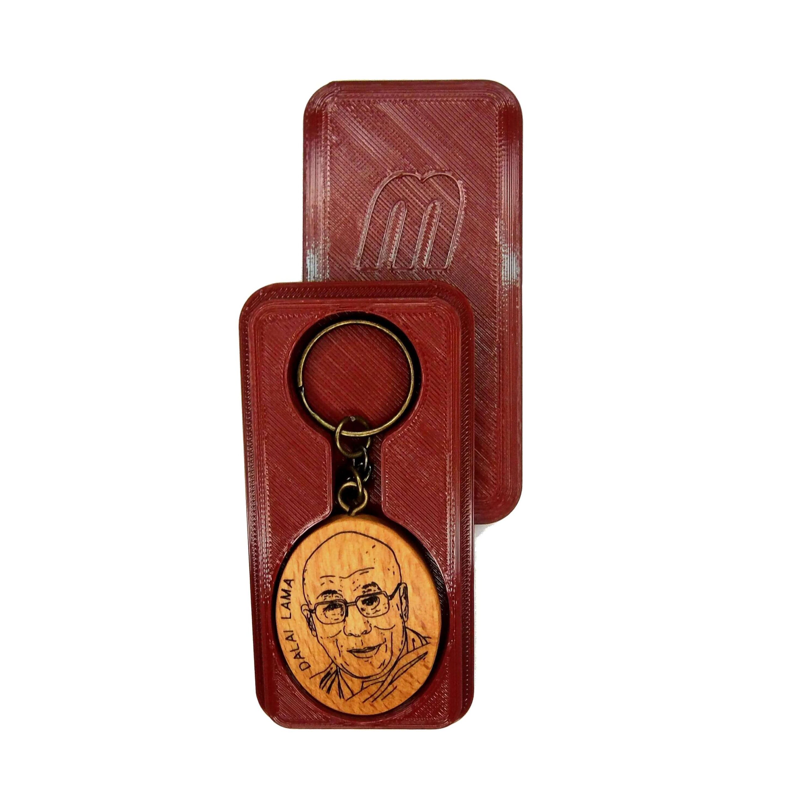 Μπρελόκ κατασκευασμένο από μασίφ ξύλο Οξιάς, με πυρογραφία Laser στις δύο πλευρές του. Η μία πλευρά έχει την προσωπογραφία του Δαλάι Λάμα, και η άλλη πλευρά ένα από τα αποφθέγματά του.