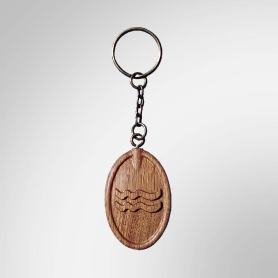 Μπρελόκ “Zodiac – Aquarius” με το σύμβολο του Ζωδίου του Υδροχόου, σκαλισμένο σε μασίφ ξυλεία Δρυς Ευρωπαϊκής προέλευσης.