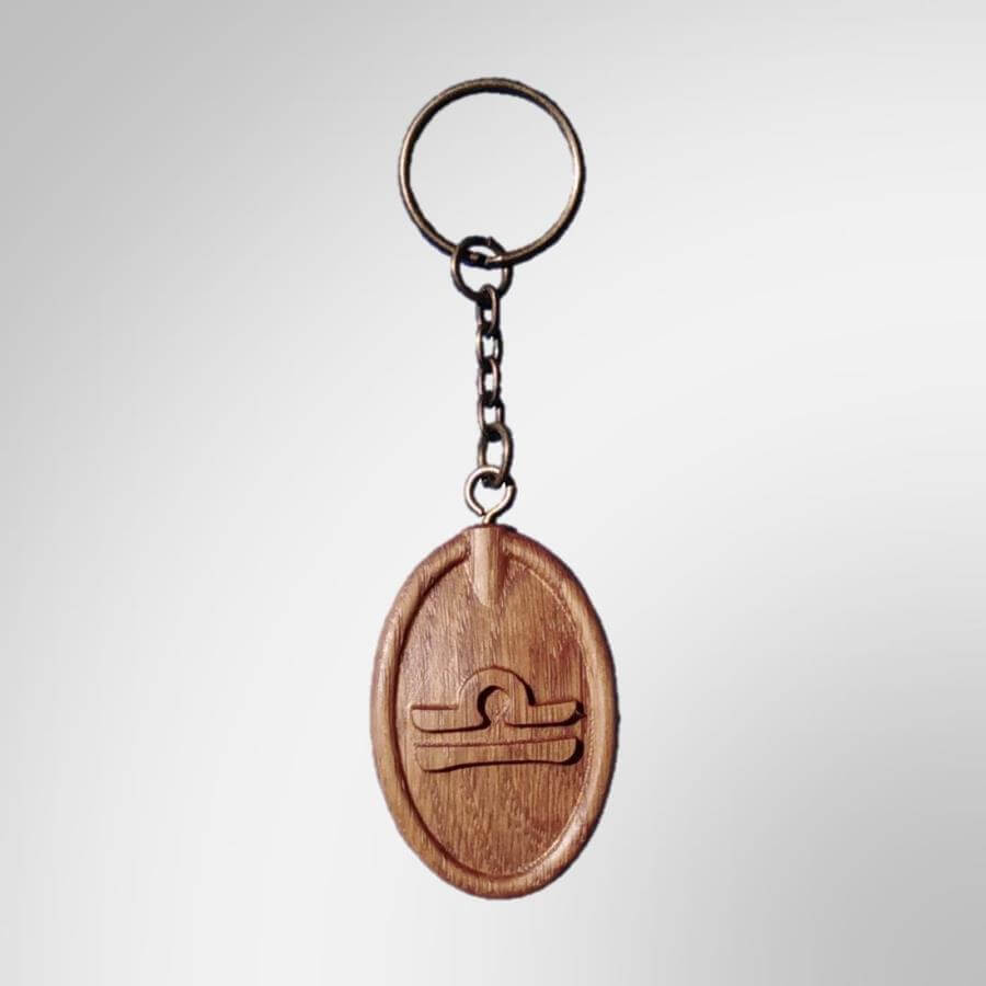 Μπρελόκ “Zodiac – Libra” με το σύμβολο του Ζωδίου του Ζυγού, σκαλισμένο σε μασίφ ξυλεία Δρυς Ευρωπαϊκής προέλευσης.