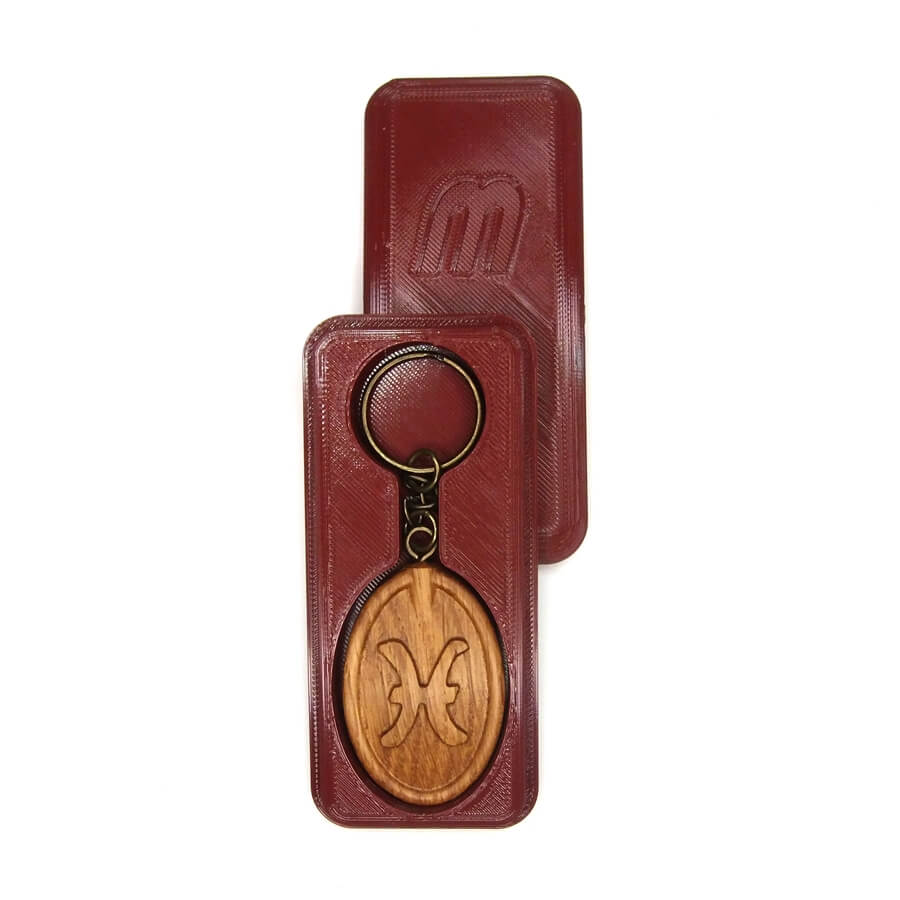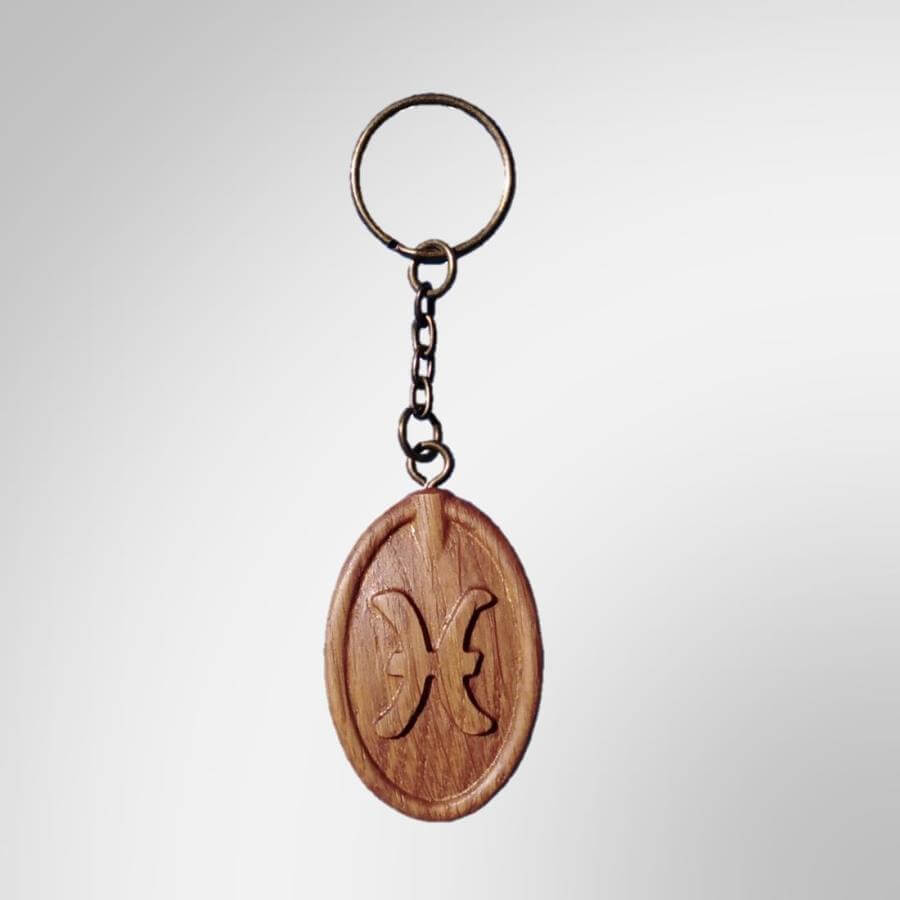 Μπρελόκ “Zodiac – Pisces” με το σύμβολο του Ζωδίου των Ιχθύων, σκαλισμένο σε μασίφ ξυλεία Δρυς Ευρωπαϊκής προέλευσης.